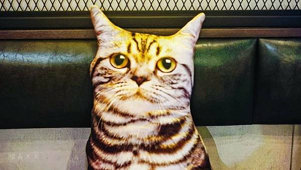 餐廳有提供許多可愛的小道具打卡拍照,像是文字標語立牌、雞腿抱枕,還是這個超可愛的貓咪抱枕,讓等待餐點的同時有趣好玩不無聊。