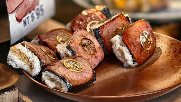 京都御握丸的招牌口味炙燒豬肉玉子燒,使用現場炙燒的餐肉片&百年歷史的「小淺雅瑪珂」海苔包覆玉子燒、紫蘇葉與米飯推疊,吃起來鹹香溫潤,且層次豐富明顯,口中從餐肉到紫蘇的香味轉換,真的令人吃一口就驚豔難忘,強力推薦必點!!